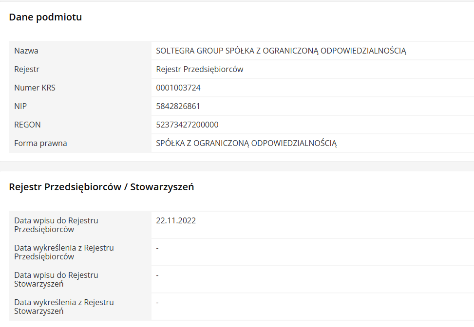 wpisanej do Krajowego Rejestru Sądowego pod numerem KRS 0000889641